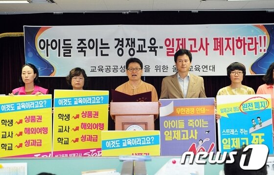 1등만 기억하는 더러운 세상 전국 학교의 모든 학생이 동시에 치르는 일제고사 시절 개그 프로에 자주 등장한 말이다. 일제고사 부활 아니냐는 우려가 나오자 교육부는 원하는 학교와 학급에 한해 실시하는 것이라고 선을 그었습니다.